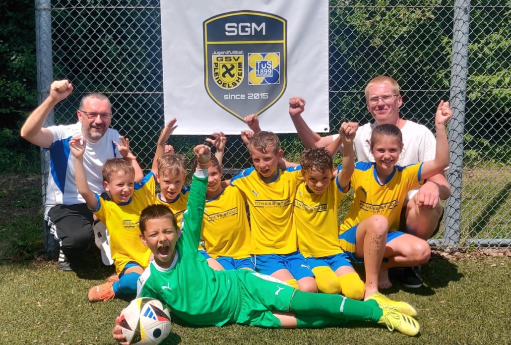 Am Samstag 20.7. stand für die F-Jugend der SG TuS Freiberg/SGV Pleidelsheim das letzte Freifeld Turnier der Saison 2023/24 an. Es ging zum TV89 Zuffenhausen zum 4. Aldente Cup. Bei sehr sommerlichen Temperaturen und viel Sonne machte sich der angeschaffte Pavillon direkt nützlich und spendete vor und zwischen den Spielen angenehmen Schatten. Spielerisch starteten die Jungs und Mädels durchwachsen mit zwei Niederlagen in das Turnier: gegen Pflugfelden und Pattonville musste man sich noch etwas warm spielen oder vielleicht waren die Köpfe schon etwas heiß gelaufen, daher wurde für Abkühlung zwischen den Spielen gesorgt: eine eiskalte Melone und ein kleines Wassereis gab es für alle Kinder. Dazu tauchten alle Kids ihren Kopf in extra dafür bereit gestellte Wassereimer, und siehe da, durch dieses Ritual und einer kleinen Umstellung der Taktik folgte eine super Leistung und es konnten zwei Siege gegen den TSV Berkheim und gegen den VfB Tamm gesichert werden. Die Stimmung war gerettet und das unentschieden im letzten Spiel gegen Salamander Kornwestheim war verkraftbar. Bei der anstehenden Siegerehrung mit kleinen Pokalen für jedes Kind konnte jeder mit einem Lachen nach Hause reisen. Es spielten Paul, Büny, Aaron, Paul, Luana, Ben und Karl.