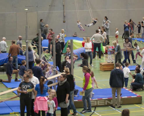 Dieses Jahr fand der Familienturntag der Turnabteilung des TuS Freiberg zum elften Mal statt, und diesmal erstmalig in der Freiberger Stadthalle. Und das war gut so, denn der Zuspruch war enorm: für den Miniturnparcours (1 – 6-jährige) gab es fast 160 Anmeldungen, davon 66 für das Mini-Turni-Abzeichen!