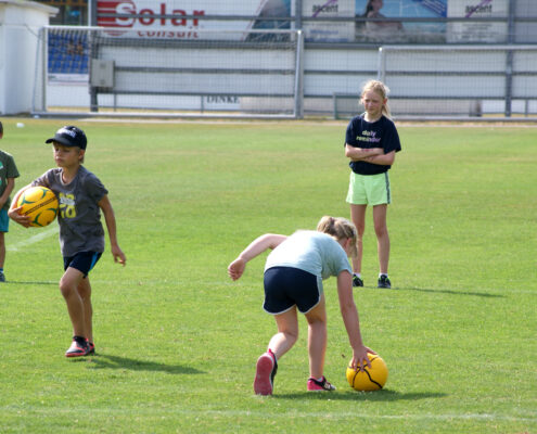 Daneben standen Koordinationsübungen auf dem Trainingsplan des Faustball-Schnupper-Tages und viele Einsteigerübungen mit dem Ball, um ein gutes Ballgefühl zu entwickeln. „Das war heute eine tolle Leistung der Kids – und das ganz ohne Faustball-Vorkenntnisse!“, lobt Faustball-Abteilungsleiter Joachim Walzer, der das Training ebenfalls angeleitet hat.