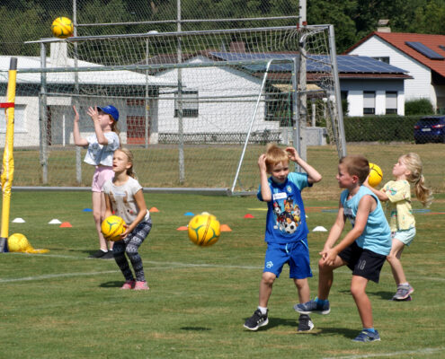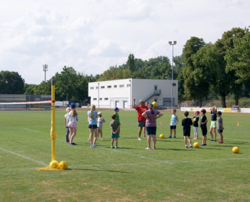 Rund 20 Kinder stürmen den Wasen – Zeit für den Faustball-Schnupper-Tag!