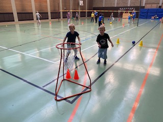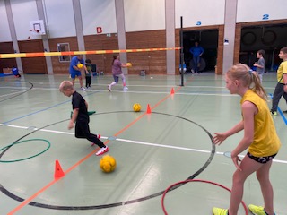 17.30 Uhr, rund 15 Kinder waren in der Freiberger Kastenhalle am Start. Damit ist diese Halle für Faustball-Maßstäbe voll ausgelastet, denn wir brauchen viel Platz für unseren Faustball-Sport. Die Faustball-Trainer Vanessa Krist und Joachim Walzer haben zehn Faustball-Stationen vorbereitet, wo sich die Kids messen konnten – natürlich mit der gewissen Portion Spaß dabei!