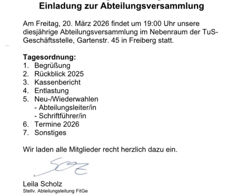 Wir vom TuS-Freiberg freuen uns über jedes neue Mitglied in unserem Verein! Denn zusammen sind wir stark!