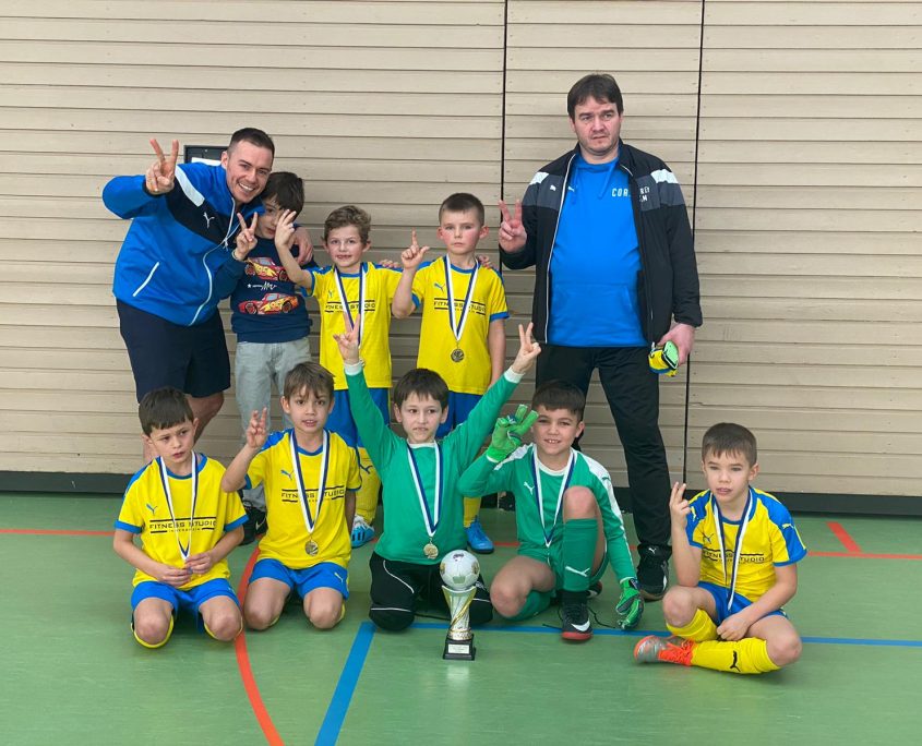 Am Sonntagvormittag (9.2.) spielten unsere Kinder der F-Jugend einen Leistungsvergleich in Leonberg/Höfingen. Unsere  Mannschaft traf in der Gruppe auf Wiernsheim, Leonberg/Eltingen und den MTV Ludwigsburg und war von der ersten Minute an hellwach und voller Spielfreude: Mit vielen Kombinationen starteten sie gegen Wiernsheim 2 mit einem 2:1 in das Turnier. Im 2. Spiel steigerten sie sich weiter und kamen nach tollen Spielzügen zu einem verdienten 3:0-Sieg gegen Leonberg/Eltingen. Gegen den MTV Ludwigsburg gelang fast alles und nach dem 6:0 war ihnen der Gruppensieg nicht mehr zu nehmen. Anschließend gab es noch 2 Spiele gegen die Teams der anderen Gruppe (6:0 gegen Wiernsheim 1 und 4:5 gegen Wiernsheim 2) und unsere Jungs konnten am Ende stolz den Pokal des ERGO Junior Hallen-Cup als Gesamtzweiter in die Höhe halten. Besonders beeindruckend waren am Sonntag das Miteinander, die Spielfreude und die Entwicklung der Jungs. Durch schöne Kombinationen und Pässe traten sie als Mannschaft auf und konnten nicht nur die eigenen Zuschauer überzeugen.