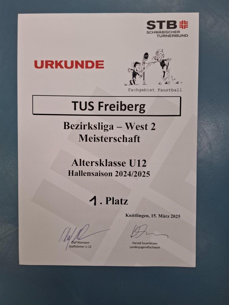 Faustball-Kids des TuS Freiberg gewinnen in der Hallenrunde 2024/2025 die U12-Bezirksmeisterschaft West