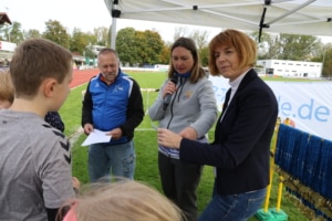 Die Siegerehrung für die Tageswertung führte die KiLa-Koordinatorin des Kreises, Sandra Pysiewicz mit dem Abteilungsleiter des TuS Freiberg, Dr. Albrecht Hampp, durch. Unterstützung erhielten sie durch die Bereichsleiterin der VR-Bank Ludwigsburg, Martina Benzler. Als Vertreterin des Sponsors übernahm diese dann die Siegerehrung der Jahreswertung in der VR-Talentiade und überreichte Urkunden und Medaillen an die sieben Vereine, deren Teams sich über das Jahr für die Wertung qualifiziert hatten. Stolz genossen alle Kinder den hochverdienten Beifall und stellten sich den zahlreichen elterlichen Fotografen.