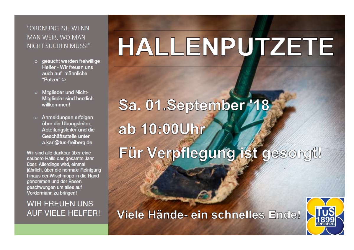 Auch in diesem Jahr findet wieder eine große Putzaktion unserer Halle statt.