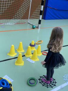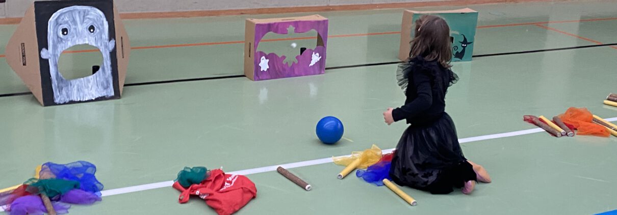 Kurz vor Halloween tobten in der Miniballschule und Ballschule, Gespenster, Hexen, Fledermäuse und Skelette durch die Kasteneckhalle.