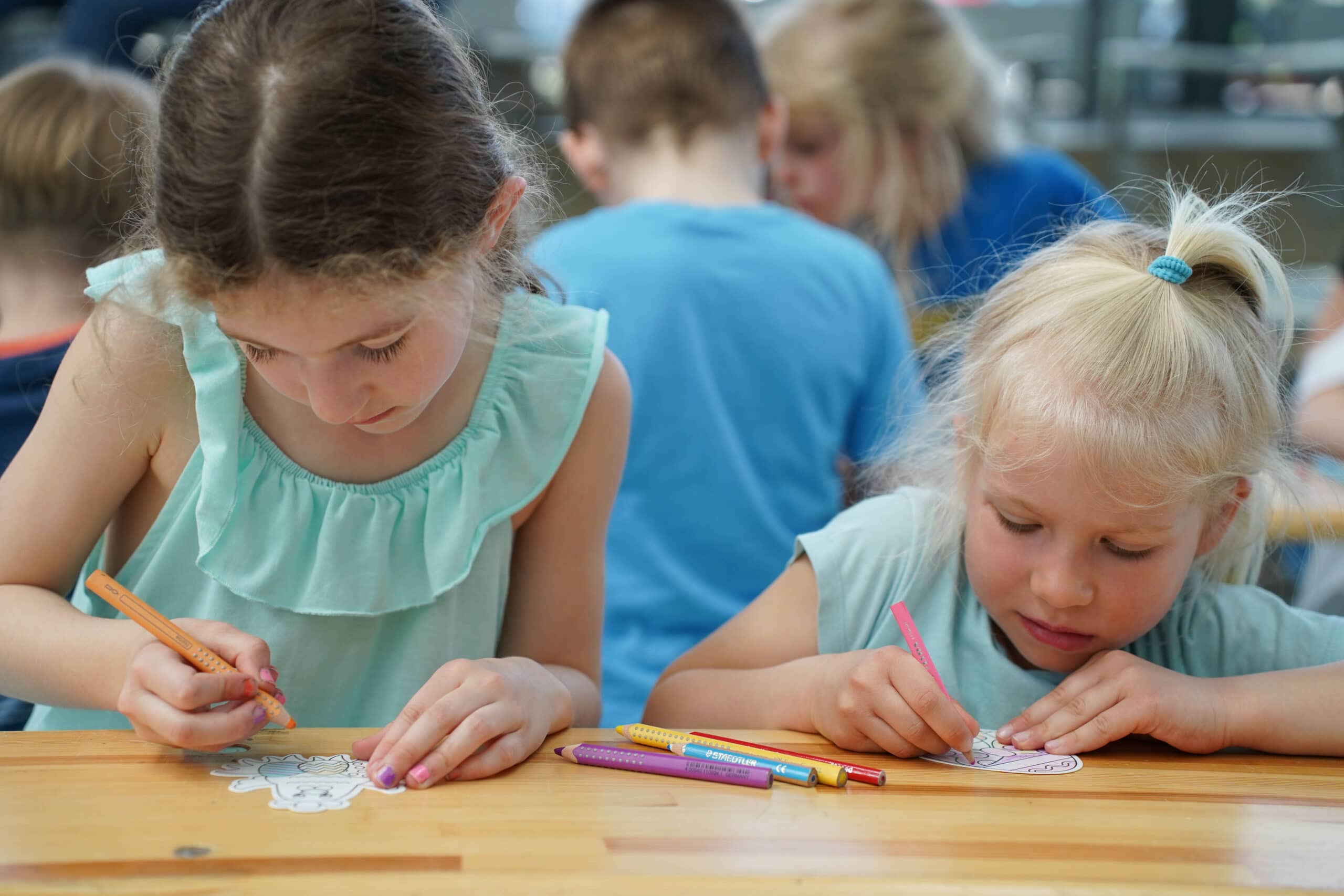 An zwei Kreativstationen kam auch die Feinmotorik nicht zu kurz. Ein bunt gestaltetes Riesen-Osterei war das Ergebnis am Ende des Oster-Events.