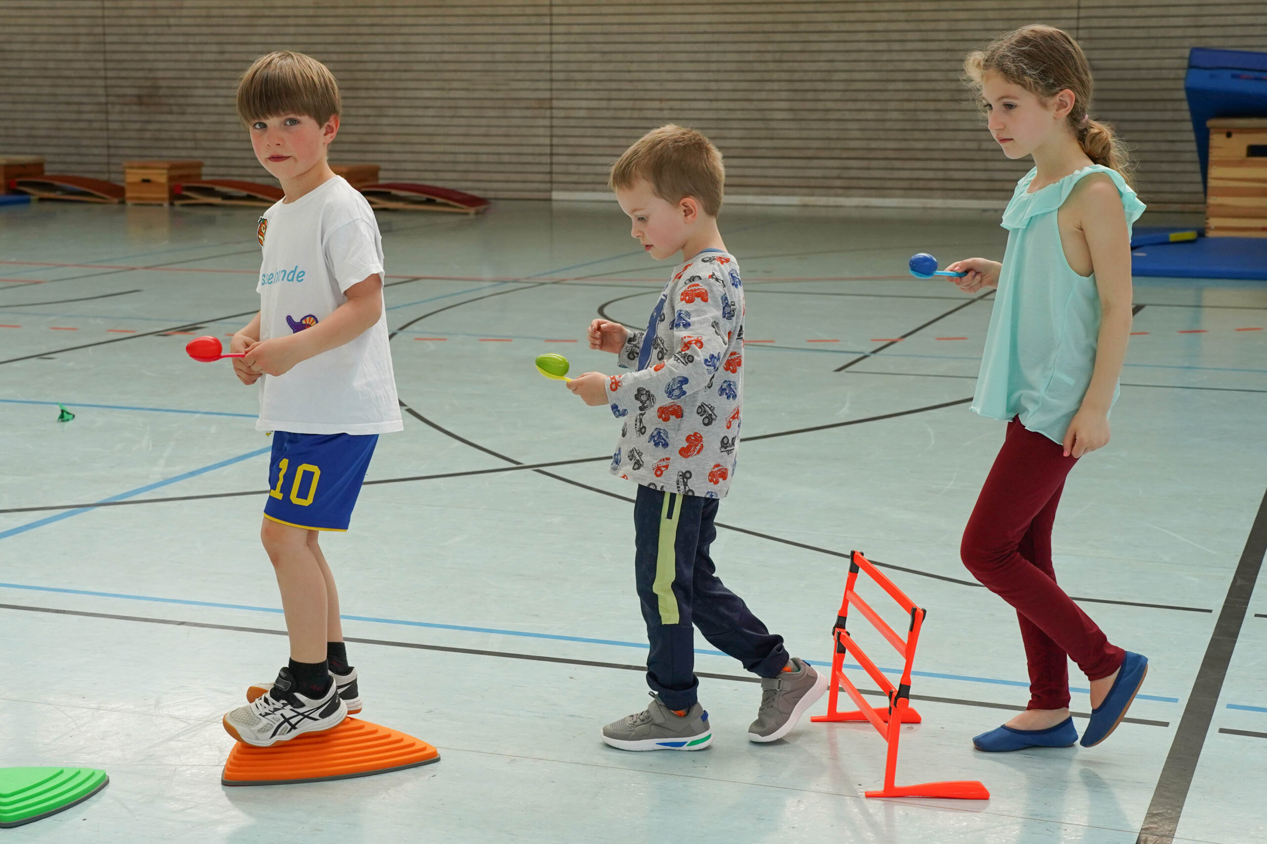 An insgesamt zehn unterschiedlichen Stationen konnten die Kinder ihre motorischen Fähigkeiten unter Beweis stellen. Unter anderem wurden im Hühnerstall Eier gerollt, am Hasenhügel gehüpft, und in der Hängematte musste sich der Osterhase auch mal ausruhen. Das klassische Eierlaufen mit einem Löffel musste über Flusssteine und andere Hindernisse bewältigt werden. Beim Möhrenschießen kam jeder auf seine Kosten. In unterschiedlicher Höhe mussten Moosgummi-Möhren durch Reifen geschossen werden.