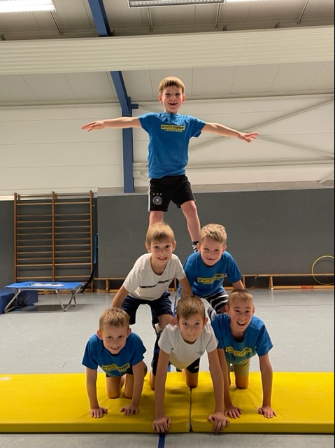Großgeräten wie Reck, Barren, Schwebebalken, Sprung und Boden erlernt.