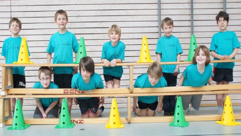 Im Gerätturnen werden die Grundfertigkeiten an den verschiedenen