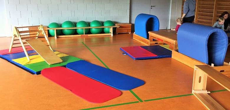 Die Kleinsten können hier ihren Bewegungsdrang ausleben, Krabbel- und Lauferfahrungen sammeln und sich mit den Eltern an altersgerechten Gerätelandschaften heranwagen. Im Mittelpunkt steht die Erfahrung erster koordinativer Fähigkeiten (krabbeln, laufen, klettern, balancieren, rollen, hüpfen, schwingen,…). Durch den Einsatz von unterschiedlichen Kleinmaterialien wird zusätzlich die Wahrnehmung und die Feinmotorik gefördert. Bewegungslieder, Finger- und Gruppenspiele kommen auch nicht zu kurz.