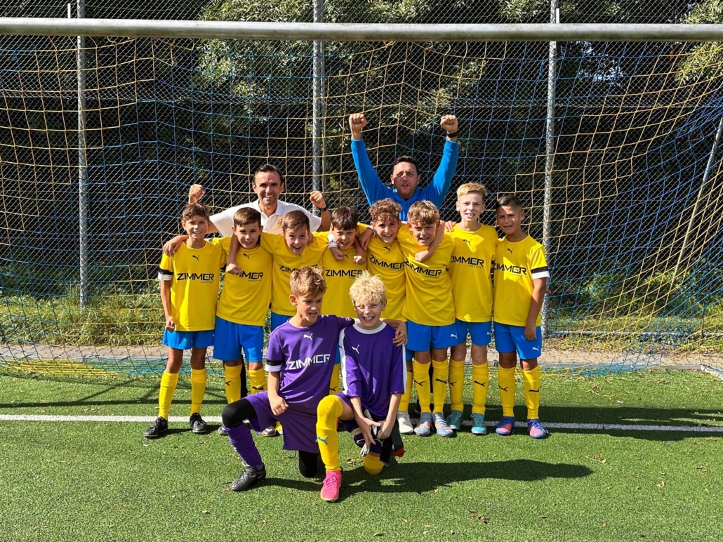 Bereits in den ersten Minuten waren wir mehr am Ball und dem Gegner oft überlegen und Julian konnte das 1:0 in der 2. Minute erzielen. Trotz teils sehr schöne Spielzüge konnten wir die Tore nicht verwandeln und immer wieder schlichen sich Flüchtigkeitsfehler ein. Erst in der 21. Minute konnten wir durch Antonio auf 2:0 erhöhen. Nach der Halbzeit drehten wir nochmal richtig auf und gaben dem Gegner keine wirkliche Gelegenheit auf unser Tor zu schießen. In der 31. Minute spielten Antonio und Ily gemeinsam sehr schön den Gegner aus, aber auch hier schaffte es der Ball leider nichts ins Tor. Durch einen gezielten Einwurf dann in der 37. Minute von Antonio auf Ily, konnte dieser seinen Gegner perfekt umspielen und auf 3:0 erhöhen. Bereits in der 41. Minute wurde auf 4:0 erhöht, nachdem Noah mit dem Ball der Linie entlang und vors Tor auf Antonio abspielte. Wunderbar verwandelt wurde dann das Endergebnis 5:0 in der 45. Minute durch Ily. Ein perfekter Auftakt in eine hoffentlich super Saison.